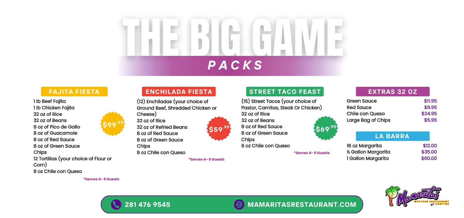 Mamarita’s is committed to bringing only the best and most flavorful ingredients to your table. For over 30 years we have made countless family meals and memories with our guests.